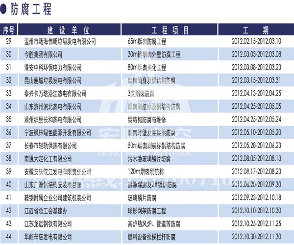 - 煙囪新建宏順建設(shè)工程有限公司是一家專業(yè)從事煙囪新建,煙囪防腐,煙囪內(nèi)壁防腐,煙囪脫硫防腐,磚煙囪新建,水泥煙囪新建,鋼煙囪新建,水泥煙囪防腐,混凝土煙囪新建,煙囪拆除,煙囪維修,煙囪脫硫防腐等工程!咨詢熱線:13770071688。